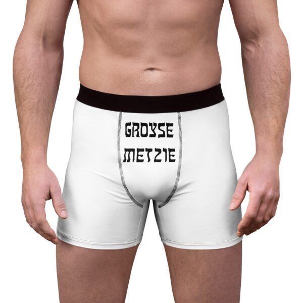 Funny Men’s Boxer Briefs Jewish Yiddish Groyse Metzie White